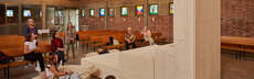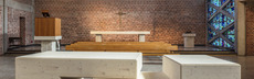 Kirchenraum und Gemeindehaus unterstützt Liturgie und Gemeindeleben gleichermaßen.