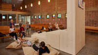 Die Jury sagt: Mit dem gewählten Ziegelstein, der Gestalt des Baukörpers, dessen Proportionen und Bezügen wurde der bestehende Ort zu einem neuen Ensemble entwickelt. Das überzeugt Besucher und Besucherinnen bereits im Außenraum spontan. Selbstverständlich und gleichzeitig selbstbewusst steht der Neubau neben dem Kirchengebäude.