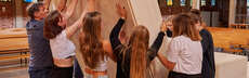 Das Longericher Parament ergänzt den Spiel.Raum.Altar.