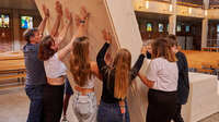 Premiere: Mit einer Tanzperfomance zum 30. Kirchbautag 2022 wurde die zweiteilige Plastik der Doppel-Kirchengemeinde und den Teilnehmenden des Kirchbautages vorgestellt.