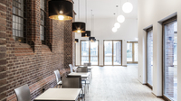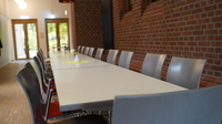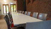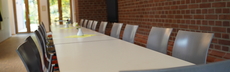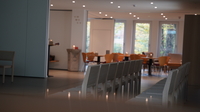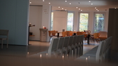 In das Foyer erweiterbare Gemeinderäume vermitteln eine überzeugende Flexibilität und Nutzbarkeit des Grundrisses. Angenehm auch die wohnlich wirkenden Büroräume.