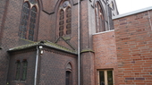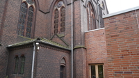 Der Baukörper zeigt sich als selbstbewusste, aber sensible Einfügung im Stadtraum. Die multifunktionale Ausnutzung des knappen Grundstücks wird von einer homogenen Architektursprache begleitet. Dabei spielt der plastische Umgang mit Ziegeln eine prägende Rolle. Der Glockenturm steht einerseits frei, er überragt jedoch andererseits nicht die Trauflinie der im Winkel darum liegenden Wohnbauten.