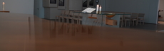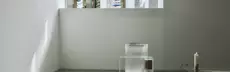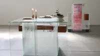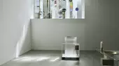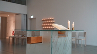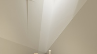 Ein großes Fenster und eine verborgene Öffnung in der Decke leiten das Licht in den Raum. Je nach Tageszeit und Wetterlage erleben die Besucher*innen den Raum vielfältig neu.