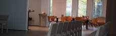 Besonders wertvoll wird der Innenhof empfunden. Er ist im Zentrum des Gemeindehauses angeordnet, ermöglicht Blickbeziehungen zwischen Bestand und Neubau, versorgt die Küche mit Licht und Luft .