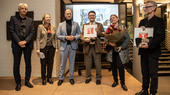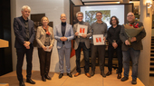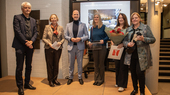 Der Sonderpreis „Vorbildlich: Klima.Gerecht.2035“ ging an die Stephanuskirche der Evangelischen Kirchengemeinde Köln Niehl-Riehl. Im Bild die Gewinner Pfarrer Uwe Rescheleit (Mitte) und Presbyter Quirin Seifert mit den Architekten Klaus Zeller und Michael Kölmel. Mit im Bild Jurymitglied Prof. Achim Pfeiffer, Landeskirchenbaudirektorin Gudrun Gotthardt und Präses Dr. Thorsten Latzel.