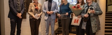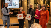 Strahlende Gesichter auch beim Preis gebäudebezogene künstlerische Ausstattung: Pfarrerin Susanne Zimmermann (v.r.n.l.), Baukirchmeisterin Karin Schiefer und Künstlerin Dorothee Bielfeld für das Kunstprojekt Spiel.Raum.Altar in der Immanuelkirche der Evangelischen Immanuel-Gemeinde Köln-Longerich. Prof. Achim Pfeiffer, Gudrun Gotthardt und Päses Dr. Thorsten Latzel gratulierten.