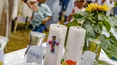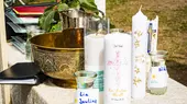 Taufe. Nach der Taufe nimmt die Familie die Kerze