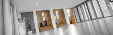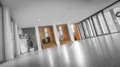 Das Foyer verbindet die Kirche mit den anderen Räumen: ein großer Saal, eine Küche, Toiletten, sowie Kinder und Jugendräume als auch die Durchgänge zu den Außenanlagen - alles barrierefrei ohne Treppen.