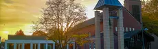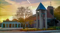 Die Kirche und das Zentrum erscheint von der Straße aus einladend und offen.