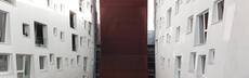 Zwischen den Gebäuden liegt ein Innenhof, der für verschiedene Aktivitäten der Gemeinde genutzt werden kann.