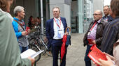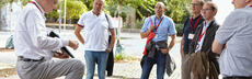 Dr. Bernhard Seiger leitete die Exkursion. Er hat den Architektur-Wettbewerb, das Planungskonzept und das Baugelände mit den Resten des ehemaligen Kartäuserklosters vorgestellt.