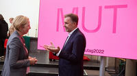 Podiumsgespräch mit der stellvertretenden Ministerpräsidentin Mona Neubaur, Präses Dr. Thorsten Latzel und Oberbürgermeisterin Henriette Reker
