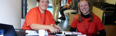 Fröhliche Gastgeberinnen: Maren Kockskämper (links) und Landeskirchenbaudirektorin Gudrun Gotthardt