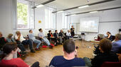 Im Gespräch: Moderator Prof. Dr. Thomas Erne (rechts) befragt Gerhard Matzig.