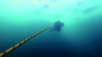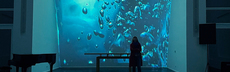 Die multimediale Videoinstallation in der evangelischen Christuskirche nimmt Besuchende mit auf einen solchen Tauchgang: Unter Eisflächen taucht Aurel Dahlgrün durch kristallklares