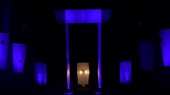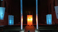 Zentrum der Installation »ODEM/RUAH« ist eine dreieckige Skulptur, ein Symbol für den Glauben an Gott als Vater, Sohn und Geist. Im Inneren der Säule erscheint eine Lichtkugel, pulsierend wird sie heller und dunkler, dazu weht ein Wind, der einem Atemzug gleicht. Am Ausgang der Tore stehen Fahnen, vier auf der linken und drei auf der rechten Seite. Betrachterinnen und Betrachter können sie als das dreieinige Göttliche und die vier Richtungen des Windes wahrnehmen.