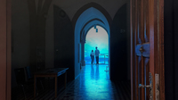 Die Essener Kirche bietet dafür den passenden Rahmen. Sie entstand nach dem Zweiten Weltkrieg, als Menschen aus vielen Richtungen zusammenkamen und in ihr einen gemeinsamen Ort für das Entdecken von Gottes Wort fanden. Antworten und Lösungen bietet die Installation von Johanna Reich nicht. Ihr Algorithmus findet alleine die Fragen, und die erscheinen den Besucherinnen und Besuchern im Kunstraum Notkirche mitunter vollkommen neu und unerwartet. Intensiv und im Kontrast von Sprache und Stille können sie dabei dem Wirken des Heiligen Geistes begegnen.